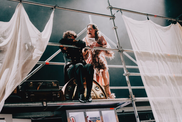 Was das Stück dem Publikum immer wieder vor Augen führt, ist das Schauspiel selbst. Die Figuren spielen andere Rollen, die sich ineinander verschieben. So überlagern sich gegen Ende die von Egert verkörperten Rollen Armand, Lord Kilmarnock und Felix‘ Vater, sodass nicht mehr zwischen ihnen zu unterscheiden ist. Auch dass wir uns im Theater befinden, wird immer wieder herausgestellt, wenn das Publikum Stichworte für den grandiosen und teilweise improvisierten Schlagabtausch zwischen Tölle und Egert liefert oder ein scheinbar zufälliges Handyklingeln die vierte Wand zerreißt. Damit verschwimmt die Inszenierung, der Traum, die Fantasie mit der Wirklichkeit und man darf, muss vielleicht die Frage stellen, ob es ein „Dahinter“ überhaupt gibt oder ob gerade das Schauspiel, die Erzählung die wahrhaftigere Wirklichkeit bereithält.
