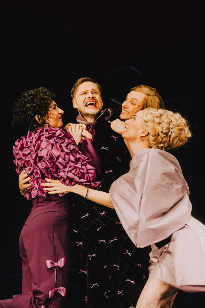 Molières und auch von Düffels Tartüff ist eine Komödie, die unterhaltsam die Scheinheiligkeit des Menschen entlarvt. Als die verzogenen Gören und aspirierenden Erben Damis und Mariane realisieren, dass „den Gürtel enger schnallen müssen“, heißt, dass sie – Schock, Horror – der Lohnarbeit nachgehen müssen, steigert sich das Publikum von einem Lacher zum nächsten. Die Interaktion der Ehemann-suchenden Mariane mit Zuschauern als potenziellen Zukünftigen kam unter den Gäst*innen ebenfalls sehr gut an. Von Düffel legt ,seinen‘ Tartüff mehr auf Nachhaltigkeit aus und fragt, zu welchen Einschränkungen unsere Gesellschaft bereit ist und wann die Versuchung die Überzeugung dennoch übermannt. Eine kurzweilige Auseinandersetzung zwischen Hedonismus und Askese, zwischen Moral und unbekümmertem Egoismus, zwischen Liebe und Geld (oder lässt sich letzteres etwa vereinen?).